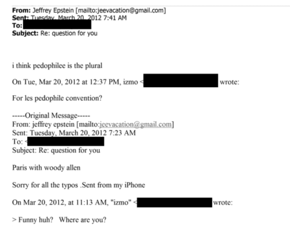 This is a point that deserves to be repeated: many of the images and message details from the exchanges between Jeffrey Epstein and Peter Attia (plus hundreds of others) are redacted, but obviously Peter Attia and the other individuals in question know the details and have the photos. Yet none of them have been pressed to come forward or account for their messages or illuminate the redactions. The legacy media has been satisfied with reporting their denials (and then retreats, and then further denials) and with publicizing the farcical Congressional hearings - along with an unhealthy dollop of curiously monomaniacal focus on Donald Trump - but very few reporters have actually tried to find the details of these messages or what they refer to. We know they exist (we have them). We know they’ve been hidden and might be deeply incriminating - not just for the people directly involved but for an entire web of powerful people and institutions. And the media, from the beginning, has endeavored to ignore these realities and pretend that the circle of recrimination isn’t vast and elite. If - after COVID and the last 6 months of the Biden presidency and Russiagate and the summer of 2020 - you think this is incidental or by accident I urge you to really reflect on what’s going on here. Dozens of global media companies are essentially helping to hide possible evidence of powerful guilt absent any possible concern for national security or victims’ safety.