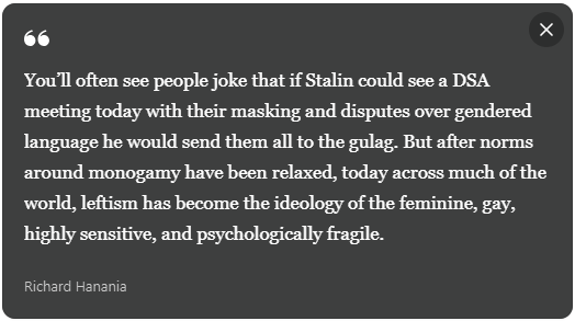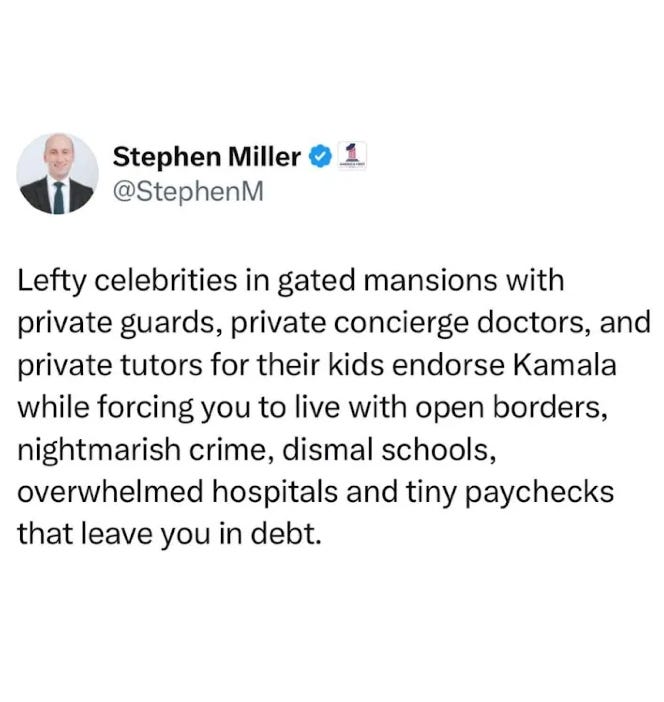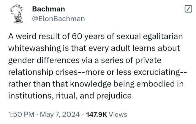 That, I think, accounts for the state of our elites these days. They all believe that responsibility and civic virtue lie in posting the right things on X… while in private they are greedy, vicious, and unkind.