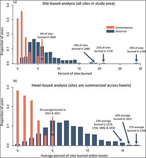 The large human influence on forests does not mean that the climate has not changed in ways that also influence fires, but it does mean that the management (intentional or not) of ecosystems has played a much larger role in shaping fire behavior than has any plausible effect of greenhouse gas emissions on climatic conditions that favor fire.
