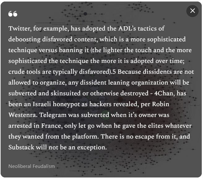 This is all in line with the Eustace Mullins quote, whereby the upper elites controlling society can determine which of these disparate groups win and which ones lose simply by adjusting the size and influence of the group by impacting their funding and reach: