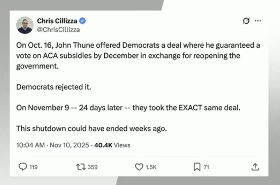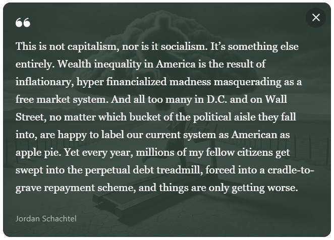 It’s not that Republicans aren’t inept and corrupt and ideological - it’s that the elite class (which is now represented by the Democratic Party) has avoided the introspection and correction necessary to recapture the center. They have used their privilege and status to shield themselves from a very plain and important reality: