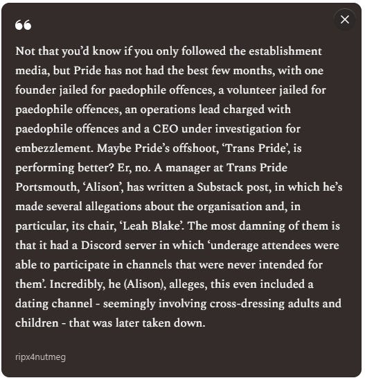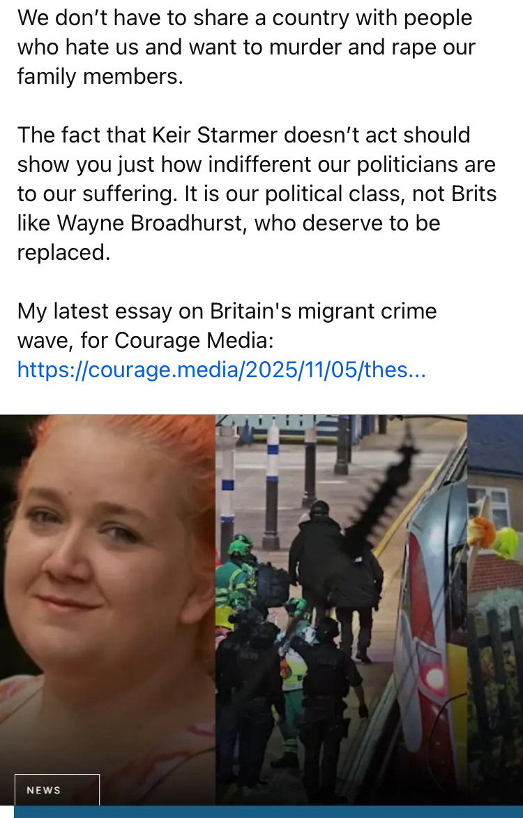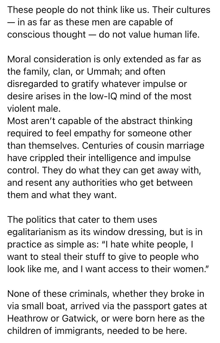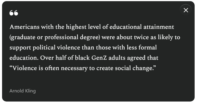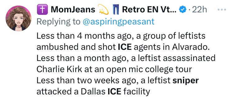 Certain ideas are more closely linked to violence than others. Such ideas shouldn’t be censored or suppressed... but they should be identified. Believing that Donald Trump is an existential threat to the United States, or that ICE is an illegitimate incursion into American civil society, are such ideas. Believing that there’s a trans genocide appears to be one of those ideas. Basically, any belief that YOUR group is at risk of existential attack by ANOTHER group probably gives rise to violence.