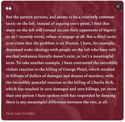 The procedure is now familiar, and well-worn: find some controversial aspect of what the right or the heterodox or institutional critics or President Trump’s administration is doing (minor, quickly forgotten, dubiously sourced - doesn’t matter) and pretend as if it’s a major issue, a norm violation, a crisis.