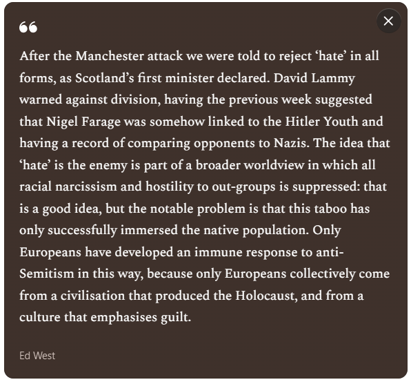 Rejecting hate means rejecting the devil in all its forms, not just anti-Semitism but Islamophobia too. Yet even the very concept of ‘Islamophobia’, although originating with hardline Muslim groups linked to unsavoury regimes, owes its continued existence to Christian guilt, and the new sins of prejudice which emerged out of post-war taboos. It is a sense of guilt that obviously sectarian activists with an illiberal agenda have been quick to use to their own advantage.