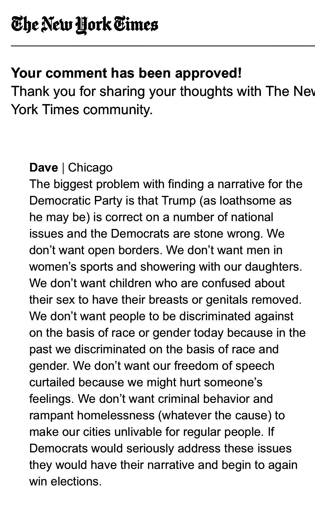 Ignore the fact that presidents and institutions and thinkers having been doing and saying precisely these kinds of things for decades (without public criticism). Ignore the sharp (and undeniable) leftward turn of elites and their chosen political vehicles over the past 20 years. Ignore the fact that every national policy entails mistakes and losers and victims (yes: every single one). Most of all ignore the larger context of the policy debate. Ignore the harms of vanishing law enforcement in our cities, tens of millions of illegal immigrants allowed into the country (encouraged to come, for a time). Ignore the billions of dollars lost to fraud, the thousands of lives lost to unaddressed epidemics of urban murder, the deaths linked to fentanyl (probably close to a million at this point). Ignore all of that, and focus on whatever triviality s currently being urgently debated on CNN tonight.