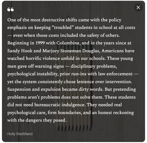 Remember the Illinois school superintendent who was a convicted criminal and illegal alien? Does anyone believe that DEI had nothing to do with his positioning near the apex of the educational system?
