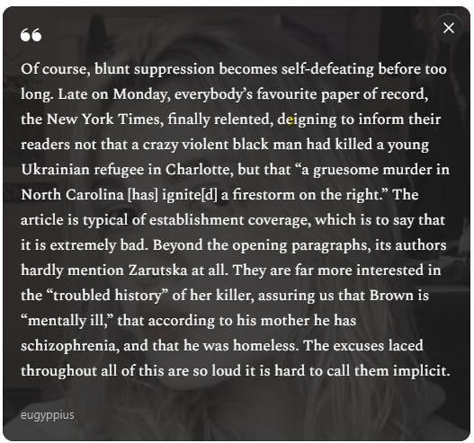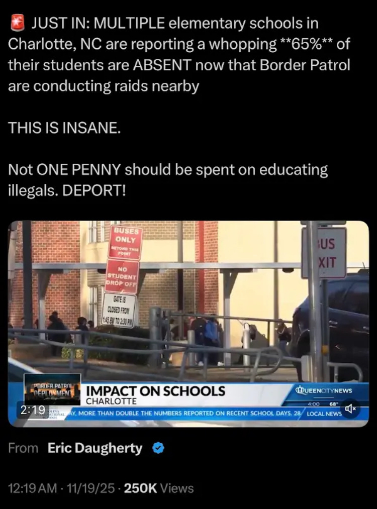 You can smell the lie an ocean way. In truth, however the statistics might be trending at the moment, the United States has wildly high crime numbers compared to many other Western nations. And the Charlotte homicide rate hit a three-year high in 2024, surpassed in recent history only by the extremely violent Summer of Floyd in 2020. In 2025, city homicides have so far slipped back towards the mean, but they’re still hovering between nine and twelve per 100,000 residents. For comparison, that is at least eleven times higher than the German homicide rate. These are eye-watering numbers.