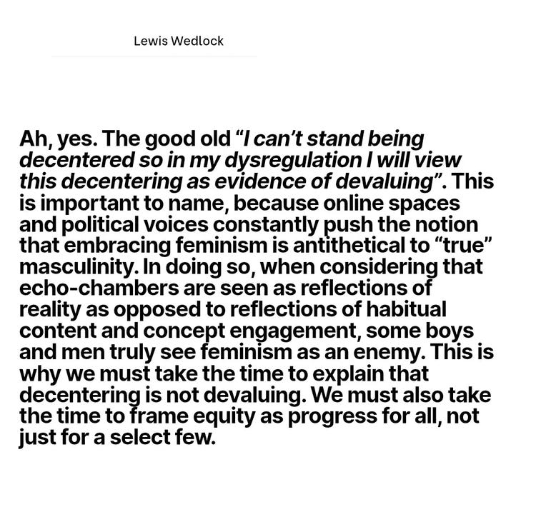 Or are we just saying that “equity is progress for all” while we continue to try to gain more wealth and power for feminists, and to control unpalatable speech?