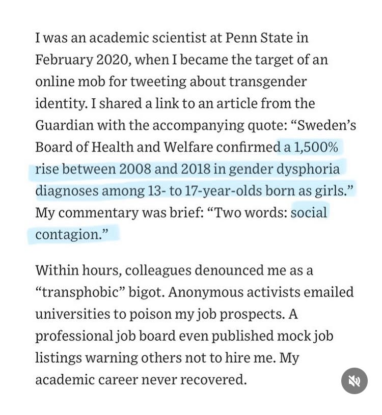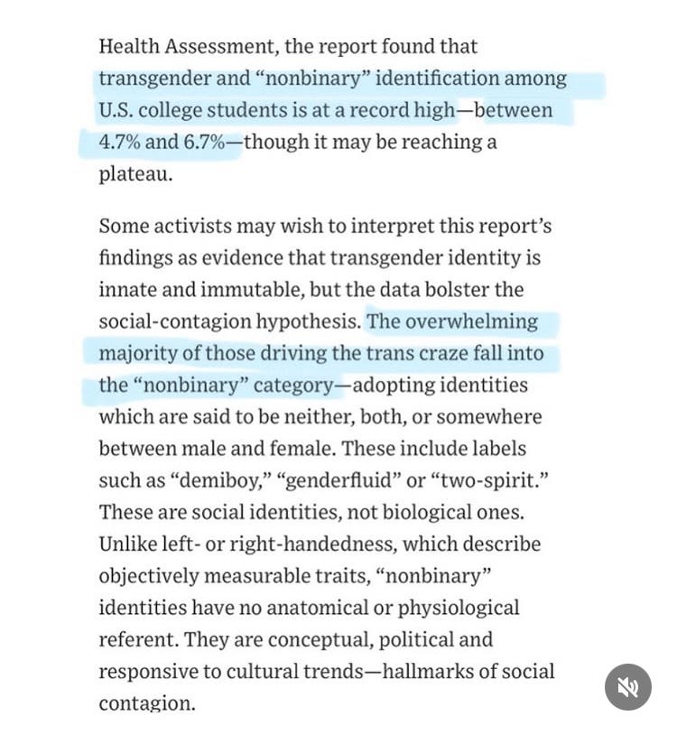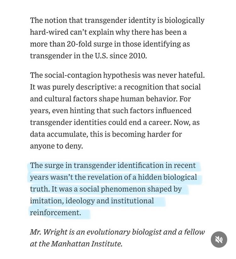 Racism has been shown to produce a fertile soil for hoaxes (and for professionals to gain money and advancement through DEI and consulting and grants, etc.). Trans is a belief system which is caught in its own vicious cycle: as the months pass more and more people leave or amend their opinions, leaving only the most vicious and deranged and intellectually subnormal believers behind… making the belief system less reasonable and attractive, etc.